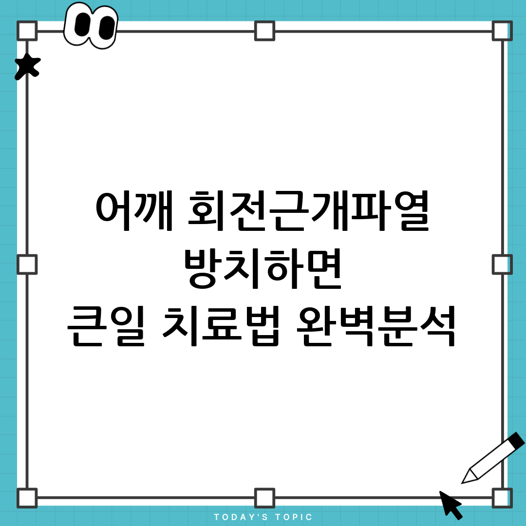 - 관절경 수술: 관절경을 이용하여 작은 구멍을 통해 수술하는 방법입니다. 흉터가 작고 회복 기간이 짧다는 장점이 있습니다. 대부분의 어깨 회전근개파열은 관절경 수술로 치료가 가능합니다.