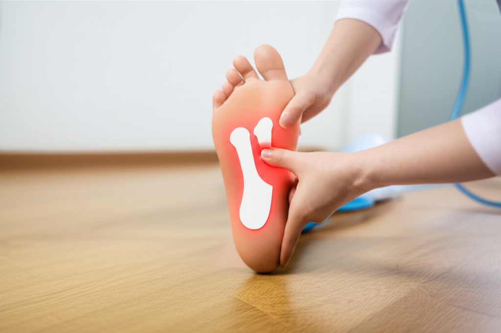 족저 근막염은 발바닥에 위치한 족저근막에 염증이 생기는 질환으로, 주로 발뒤꿈치 통증을 유발합니다. 특히 아침에 일어나 첫발을 디딜 때나 오랜 시간 앉아 있다가 다시 일어설 때 가장 심한 통증이 느껴지는 것이 특징입니다.