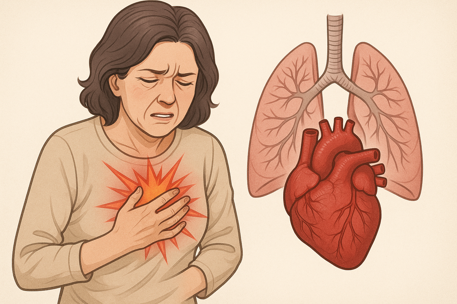 호흡이 빠르고 얕아지며, 이는 가슴 중앙의 불쾌감을 동반한 통증으로 이어질 수 있습니다.