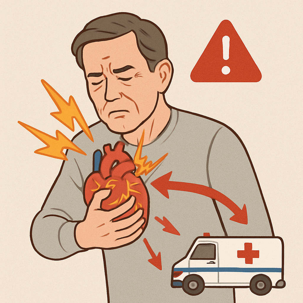- 심근경색: 혈관이 완전히 막혀 심장 근육이 괴사하는 응급 상황입니다.