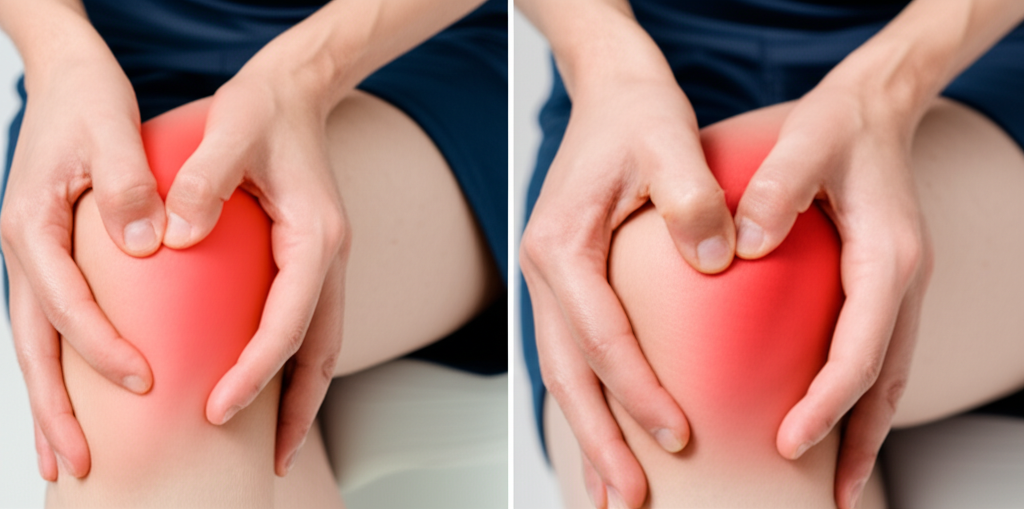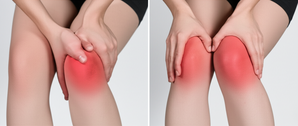 - 주요 증상: 무릎이 빨갛고 뜨거우며 통증을 동반