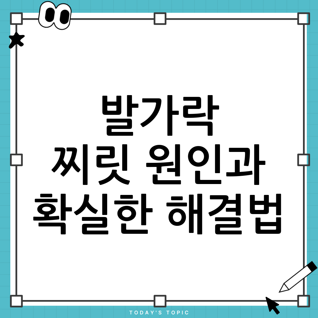 발가락이 찌릿찌릿한 증상은 다양한 원인에 의해 발생할 수 있습니다. 가장 흔한 원인으로는 신경 압박, 혈액 순환 장애, 당뇨병성 신경병증, 족저근막염, 그리고 특정 영양소 결핍 등이 있습니다. 각각의 원인을 자세히 살펴보고, 자신의 증상에 맞는 원인을 파악하는 것이 중요합니다. 발가락이 찌릿찌릿할 때는 무심코 넘기지 말고 원인을 찾아 적절한 대처를 해야 합니다.