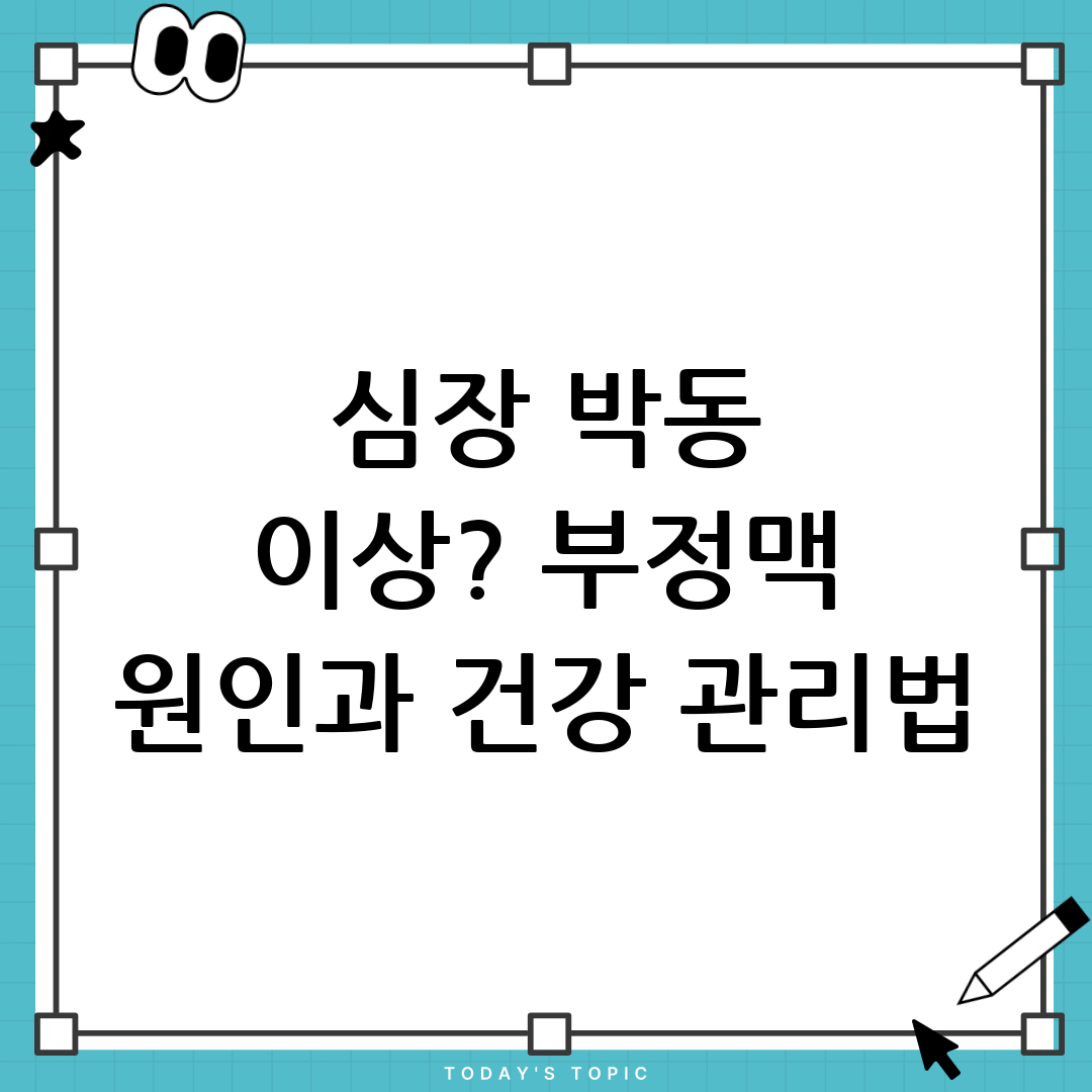 부정맥은 심장이 불규칙하게 뛰는 상태를 의미하며, 다양한 부정맥 원인에 의해 발생할 수 있습니다. 건강한 삶을 위해서는 부정맥 원인을 정확히 파악하고 예방하는 것이 중요합니다. 이번 포스팅에서는 부정맥 원인을 자세히 알아보고, 부정맥 예방 및 관리에 도움이 되는 정보를 제공하고자 합니다. 부정맥은 심각한 건강 문제로 이어질 수 있으므로, 부정맥 원인에 대한 이해는 필수적입니다.