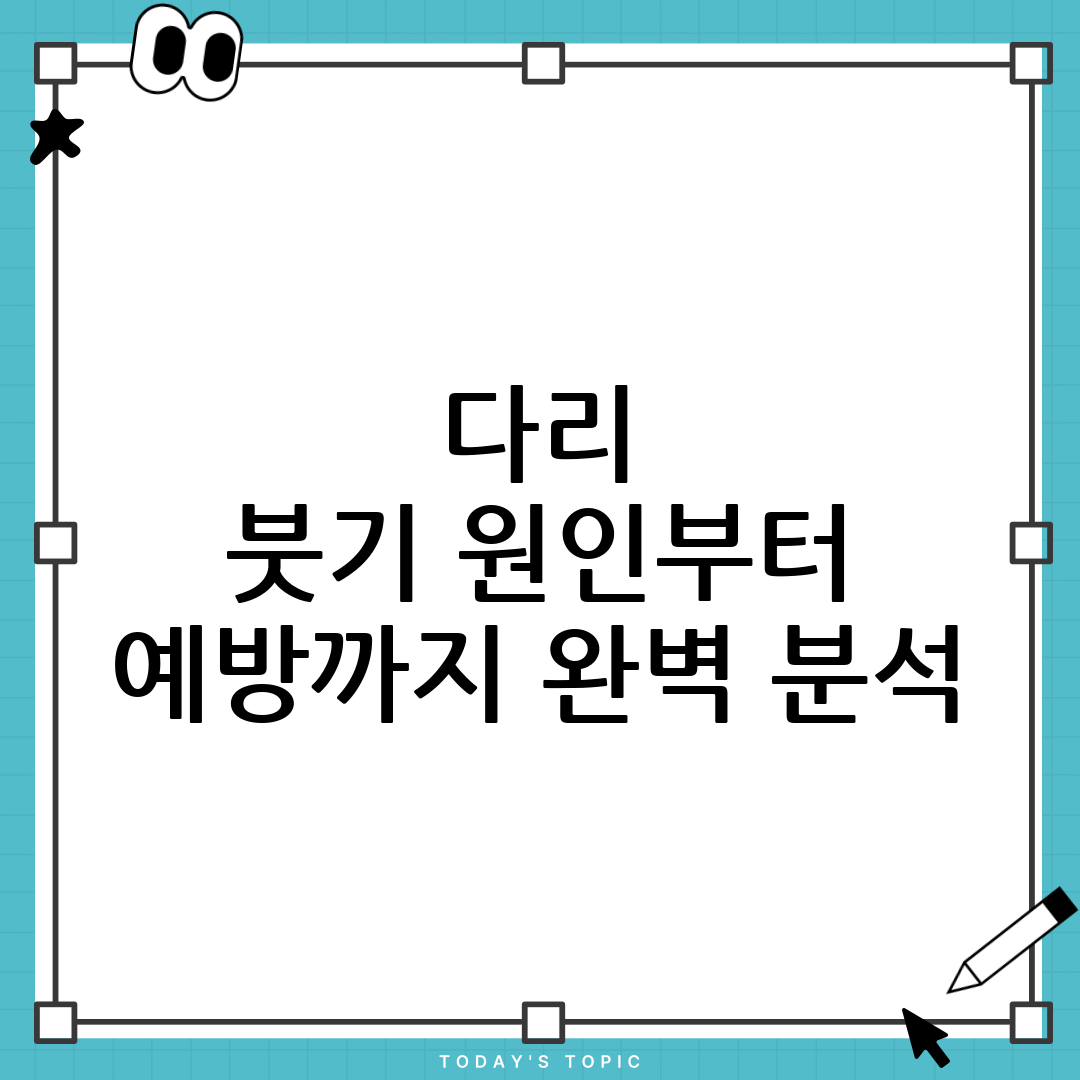 다리가 붓는 원인은 다양하며, 생활 습관, 건강 상태, 특정 질환 등 여러 요인이 복합적으로 작용할 수 있습니다. 정확한 원인을 파악하는 것이 중요하며, 필요에 따라 전문가의 진단을 받는 것이 좋습니다.