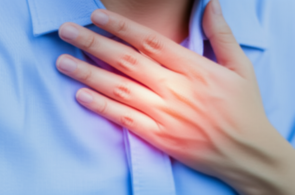 • 가슴통증: 흉골 뒤쪽으로 타는 듯한 통증이 느껴질 수 있으며, 이는 식도염의 가장 흔한 증상 중 하나입니다. 특히 식사 후나 누워 있을 때 심해지는 경향이 있습니다.