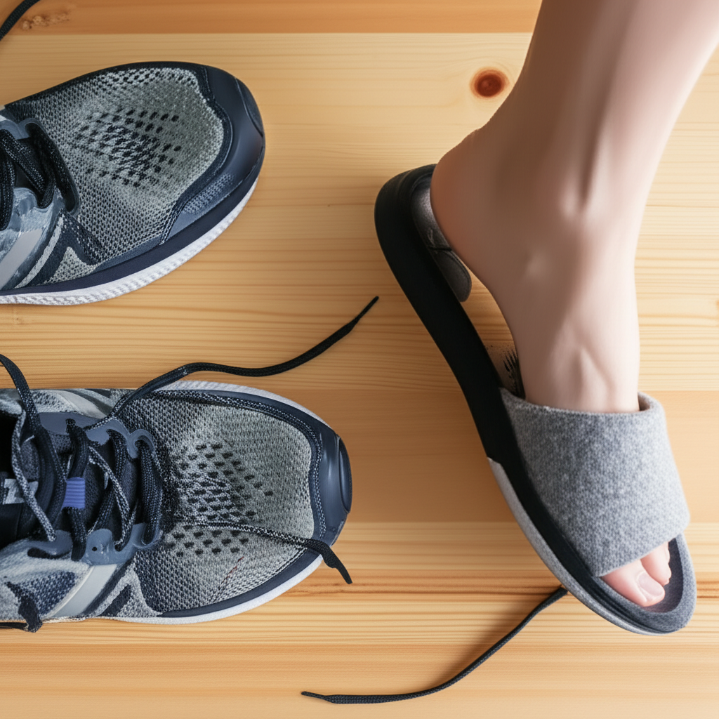 - 땀 흡수가 잘 되는 면이나 기능성 양말 사용